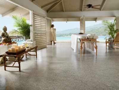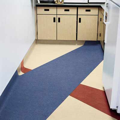 Из натурального линолеума можно создавать различные аппликации, мозаичные рисунки. На фото: натуральный линолеум Serene Blue от Armstrong.