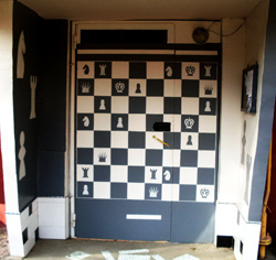 Трудно сказать, какой из сценариев для дома оказался самым удачным. Все они хороши и своеобразны. Но, безусловно, предпочтение отдают здесь одному их них – благоустройству территории и подъездов. Пожалуй, это визитная карточка пятиэтажки, по которой ее можно отличить от сотен других. Творческое начало председателя проявилось здесь в полной мере. Пока жители других домов обивали пороги разных инстанций с просьбами оборудовать им детскую площадку, здесь ее обустроили сами. Да еще какую! Телевизионщики облюбовали ее для съемок своих сюжетов. Посмотреть на нее приезжают из других товариществ. Жители в многоэтажках часто конфликтуют между собой из-за незаконных парковок личных автомобилей под окнами, а в этом товариществе… построили для них автостоянку. Часто можно услышать, как люди возмущаются, что в подъезды невозможно войти, что они давно требуют ремонта, а у ТЧСЖ на это нет денег. В подъездах этого дома чисто, уютно, необычно и очень даже по-домашнему. Они напоминают, скорее, творческую лабораторию или мастерскую, где председатель воплощает свои удивительные идеи и фантазии. Где еще можно увидеть дом, где двери расписаны в виде шахматной доски, разбросанных гроздьев винограда или ветки лимонного дерева? Или стену в подъезде, ослепляющую синевой моря с плывущими дельфинами. В каждом из них зеркала, цветы, картины, вазы, декорированные композиции… Плакат «Без улыбки не входить!» – скорее, констатация факта. Улыбка, хорошее настроение и заряд позитива обеспечены здесь каждому гостю.