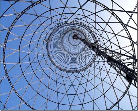 Телебашня на Шаболовке строилась в 1919-1922 гг., к открытию Генуэзской конференции. По первоначальному замыслу ее высота должна была составить 350 м, однако из-за дефицита металла пришлось ограничиться 160 м. Использованные инженером Владимиром Шуховым гиперболоидные конструкции значительно уменьшили массу башни. В 1922 г. началась трансляция радиопередач, с 1939 г. — телевизионных программ.