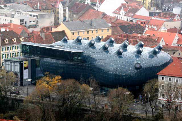 Отделанное медью новое здание Мемориального музея М.Г. де Янга, спроектированное бюро Herzog & de Meuron в Сан-Франциско, Калифорния, США, нередко сравнивают с ржавым авианосцем, что, однако, не мешает ему фигурировать во всех антологиях современной музейной архитектуры.