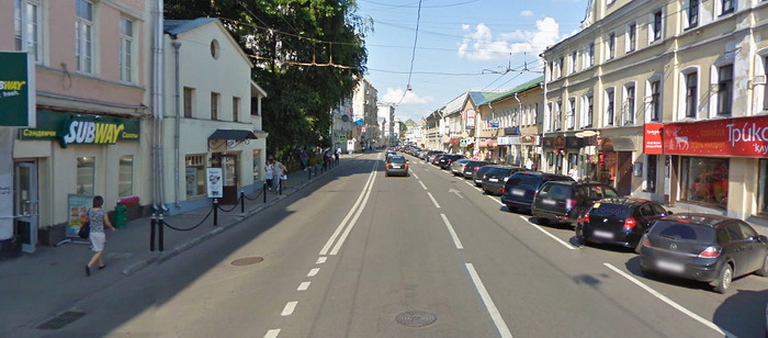 Маросейка, 2014-й. Пока она заставлена машинами, пешеходам остался узенький тротуар