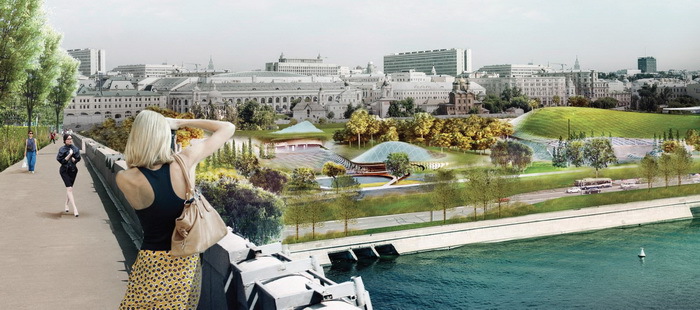 В конце концов, Президент Владимир Путин предложил на пустующей территории ничего не строить, а разбить здесь, в двух шагах от Кремля, современный городской парк. Был объявлен архитектурный конкурс. В результате в финал вышло три проекта: российского ТПО «Резерв», американского архитектурного бюро Diller Scofidio+Renfro и голландского MVRDV. Победителем было объявлено Diller Scofidio+Renfro, предложившее парк в модном стиле ландшафтного урбанизма.