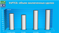 За период с 17 по 23 ноября общий объем сделок, заключенных на УзРТСБ увеличился и достиг максимального значения за текущий год – 215,5 млрд сумов. Данный рекордный показатель достигнут на фоне опережающего развития выставочно-ярмарочных торгов и электронных закупок. Биржевые торги Биржевой рынок после значительного роста на предыдущей неделе вступил в фазу коррекции. Объем реализации биржевых товаров сократился на 4,1% и составил 165,3 млрд сумов. Совокупная доля строительных материалов и продовольственных товаров снизилась с 47% до 43%. Впрочем по отдельным товарным группам отмечается рост. Так, продажа кормов для животноводства и химической продукции выросла на 6% и 3,5% соответственно. При этом, структура реализованных товаров практически не изменилась. Противоположная картина сложилась в экспортном направлении. Объем сделок, заключенных на валютной торговой площадке составил 1,2 млн долл. США против 116,9 тыс. долл. США неделей ранее. ООО СП «Shortan Gaz Mahsulot» реализовал на экспорт сжиженный газ на 892,6 тыс. долл. США, что составляет 72% от общего экспорта. Остальную часть рынка заняли трансформаторное масло – 21% и карбамид – 7%. Выставочно-ярмарочные торги На прошлой неделе, несмотря на сокращение количества активных участников торгов и заключенных ими сделок, сумма выставочно-ярмарочных торгов выросла с 23,9 млрд сумов до 34,5 млрд сумов. Объем реализации продукции субъектами малого бизнеса также увеличился на 73,4% и составил 19,6 млрд сумов. В рассматриваемый период наибольшее количество сделок заключено в Бухарском филиале. На вторую строчку с первого места опустился Ташкентский филиал, а тройку лидеров замкнул Андижанский филиал. В свою очередь, по сумме совершенных сделок лучшие результаты достигнуты столичным, Навоийским и Каракалпакским филиалами. Сумма реализации продукции машиностроения выросла более чем в 2 раза, с 8,1 млрд до 16,7 млрд сумов, что является лучшим результатом недели. Следующие позиции заняли нефтепродукты – 10,2 млрд сумов и группа полимеров – 2,4 млрд сумов. Крупнейшая сделка недели заключена в Навоийском филиале. Сумма реализации электродвигателей составила 10,0 млрд сумов. Государственные закупки Объем сделок, заключенных на государственных закупках, вырос на 13,1% и составил 9,0 млрд сумов. Положительная динамика достигнута на фоне роста количества участников торгов с 3048 до 3599, которые заключили на 601 сделку больше, чем неделей ранее. Наряду с этим, сумма экономии увеличилась на 29,3%, или с 1,9 млрд до 2,5 млрд сумов. Доля малого бизнеса в общем объеме совершенных сделок составила 99%. По количеству сделок поставщики Наманганской области поднялись с третьей позиции на первую строчку. Второй результат продемонстрирован поставщиками Самаркандской области. А предыдущим лидерам, поставщикам Андижанской области, удалось замкнуть тройку лидеров. Рейтинг регионов по сумме совершенных сделок возглавили поставщики столицы, Самаркандской и Ферганской областей. Крупнейшая сделка недели в размере 216,8 млн сумов заключена в Хамзинском районе столицы. Максимальная сумма экономии в размере 39,1 млн сумов достигнута по сделке на поставку мебели в город Карши. На прошлой неделе наиболее активные электронные торги состоялись по двум заявкам на приобретение одеял и обогревателей, на каждую из которых поступило по 32 встречных предложения. Ко