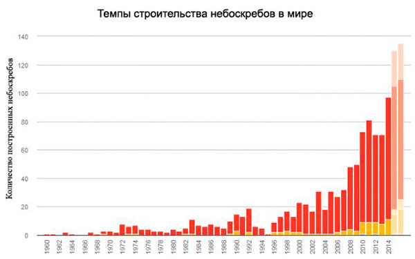 Минувший год стал рекордным по числу построенных в мире небоскребов, причем более чем за половину высотных зданий оказалась ответственной одна страна - Китай, говорится в отчете Всемирного совета по высотным зданиям и городской среде (CTBUH).