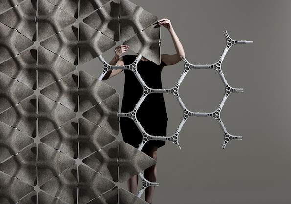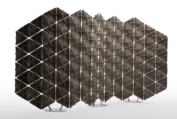 Пытаясь решить проблему раздражающих и отвлекающих звуков в офисных пространствах, студия Layer Design предложила сборную систему перегородок Scale. Модульная структура, как соты, построена на основе шестигранников, которые набираются из треугольных пластмассовых деталей.