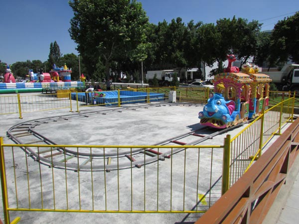 Отремонтирован также и бывший мясной павильон у задних ворот базара. Однако реконструкция коснулась его только снаружи. Внутри, как на первом, так и на втором этажах, все осталось без изменений. Справа от основного павильона построена чайхана в восточном стиле: резные навесы, тапчаны, потрясающий фонтан с чархпалаком. Обновленный Алайский теперь понравится даже самым маленьким посетителям: на базаре появилась детская площадка с различными аттракционами и бассейн для купания.