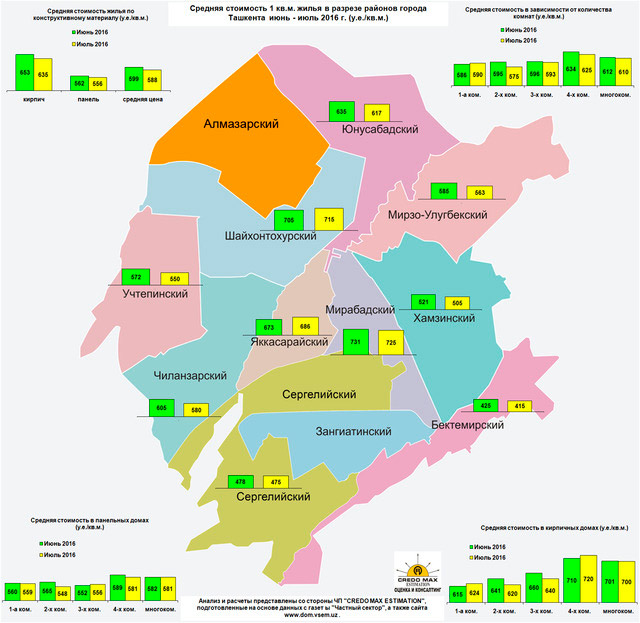 Средняя стоимость 1 кв. м жилья в разрезе районов Ташкента за июнь-июль 2016 года
