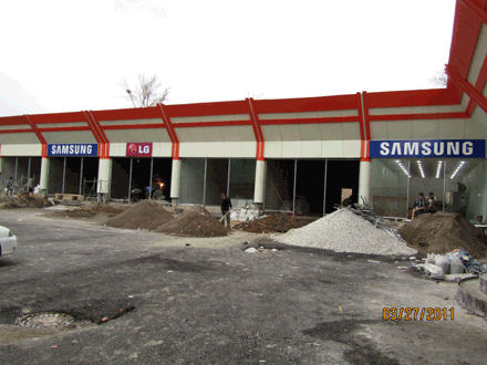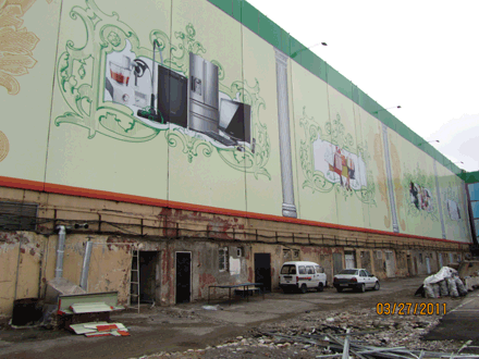 За зданием бывшей фабрики "Малика", в котором уже располагаются магазины, вовсю идёт строительство нового торгового ряда.