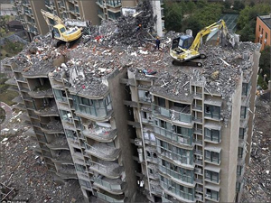 Покупатели квартир в 18-этажном жилом комплексе в городе Тайчжоу, провинции Чжэцзян, приобрели жилье с «подмоченным» прошлым и «пыльным» будущим. Высотное здание привлекло множество покупателей роскошным видом на океан. И хотя стоимость "квадрата" превышала $777, все апартаменты были раскуплены еще до начала строительства, в 2009 году. В январе 2011 года дом сдали в эксплуатацию, однако через 17 (!) часов после вьезда жильцов, обнаружилось, что здание, оседает. Оказалось, что башня, построенная на мелиорированных землях, и фундамент не выдерживает веса конструкции. Эксперты успокоили жильцов тем, что мелиорированные земли оседают неравномерно и предложили подождать. В сентябре 2011 года, когда темпы погружения ускорились, компания-застройщик попыталась укрепить шаткую конструкцию. Но в начале ноября один из главных столбов, поддерживающих башню, сорвался и жителей этого дома и некоторых близлежащих домов пришлось эвакуировать. В настоящий момент, как сообщает The Daily Mail, аварийное здание демонтируют экскаваторами, которые втащили наверх с помощью кранов. Напомним, что скандалы из-за плохо спроектированных и построенных зданий в Китае - не редкость. В частности, в 2008 году землетрясение в Сычуани, на западе страны, привело к обрушению нескольких сотен построек, в том числе и школ, а в 2009 году в Шанхае рухнул недостроенный многоэтажный дом.