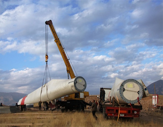 «В настоящее время, компания XIAN ELECTRIC ENGINEERING поставила первую партию технологичного оборудования: фундаментное кольцо, ступицу и лопасти ветровых энергоустановок. В данном оборудовании уникальными являются лопасти, которые произведены из усиленной стеклоэпоксидной смолы и имеют длину 23,5 метра, а также вес - в 3 тонны каждая. Отметим, что установки из Китая до Узбекистана были привезены автотранспортом», - отмечает ГАК «Узбекэнерго». .