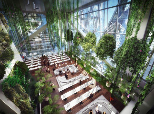 В день рожденье компании "Taiwan R.O.C.”, которой исполнилось чуть ли не сто лет, главной целью правительства города Тайчжун заключается в чести ведения местных традиций строительства и тем самым символизируя новый динамичный Тайвань в экономических, политических, социальных и культурных достижений. Международная модель зеленого здания 21-го века, это инновационные и новаторские конструкции Bionic Arch Vincent Callebaut Architecture являющиеся частью нового генерального плана "Taichung Gateway – Active Gateway City”, будущий городской оазис для жизни, инновации, культура и биоразнообразия в самом сердце Тайваня. Зеленая башня сочетает в себе и превосходит девяти основных показателей определяющих здание по закону, и усиливает связь между строительной площадкой и окружающих парков Taichung Gateway Park, в том числе экологической интеграции, интеграция зеленой вертикальной платформы , садов и фасадов жизни, взаимодействие между человеком и природной среды. Она активно способствует развитию использования новых устойчивых энергий (солнечной и ветровой генерируемой мощности, в сочетании с ботаническим и био-технологий), подчеркивает уважительное отношение в целях достижения еще более высоких стандартов, чем обычные зеленые здания. Повышение осведомленности о климатических изменениях и необходимости защиты окружающей среды, Тайвань Башня станет новой достопримечательностью устойчивого развития, 100% самодостаточными с CO2 с нулевым уровнем выбросов, поэтому политика правительства способствует в плане экономии энергии и сокращения выбросов углерода.