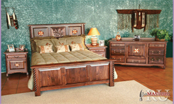 Традиционным материалом для мебели в саутвест-стиле является сосна. Отличительными чертами мебельного ансамбля являются простота, минималистичность и даже некоторая грубость, присущие стилю Санта Фе или американскому кантри, однако саутвест более декоративен, что проявляется, например, в резных спинках стульев, металлических аксессуарах. В таких помещениях естественно смотрятся большие шкафы, сундуки, кованые столы. Кстати, стиль не допускает использование встроенных одежных и бельевых шкафов. В саутвест-интерьерах появляется плетеная мебель из ротанга. В качестве обивочных материалов для кресел и диванов используется кожа и ткани с индейскими мотивами.