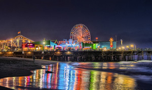 Солнечное колесо обозренияКолесо обозрения, расположенное в парке развлечений на пирсе в американском городе Санта-Моника, не может похвастаться ни высотой, ни оригинальностью конструкции. Однако это первое в мире колесо, которое получает энергию исключительно от солнечных панелей, что, впрочем, не мешает ему ярко подсвечиваться даже в темное время суток.