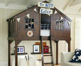 Кровать под названием Домик на дереве (Treehouse Bed) от компании Pottery Barn подходит как для мальчиков, так и для девочек. По сути это стандартная сдвоенная кровать с отделкой в виде домика на дереве. Такой домик не только забавен, но и открывает простор для воображения ребенка. Такой дом можно украсить как душе угодно, сделав из него лачугу, каюту или космическую станцию — все, как мечтает ваш ребенок.