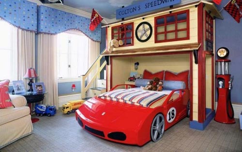 Например, для автомобильной тематики будет достаточно аппликаций с изображением автомобилей на стены, напольного покрытия или ковра с декоративной дорогой. В качестве элементов декора можно использовать дорожные и автомобильные знаки, флаги, плакаты, календари и фотографии машин. Также сейчас в магазинах продаются кровати в форме различных гоночных машин.