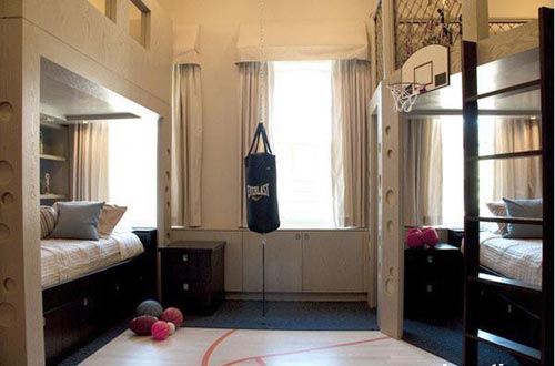 Спортивная тематика может быть представлена различными видами спорта, самый популярный среди которых – футбол. Как правило, такую тематику выбирают активные дети. Если ребенок занимается спортом, то его спортивные награды будут отличным элементом декора. Небольшая коллекция мячей, футболок, флагов, фотографии любимых спортсменов – все украсит комнату такого стиля. На пол можно постелить зеленый ковер. Если размеры комнаты позволяют, можно установить в углу мини-ворота, и играть в футбол прямо дома!