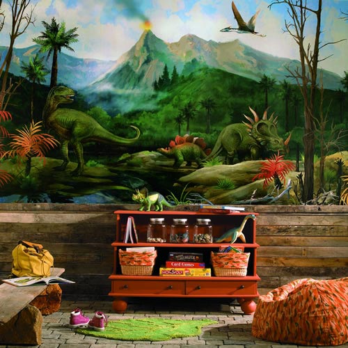 Динозавры пользуются популярностью уже много-много лет. На полу и на стенах можно нарисовать следы динозавров. Фотообои и постеры во всю стену, игрушки, постельное белье, книги на полках, статуэтки – все создаст неповторимый дизайн.