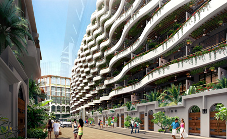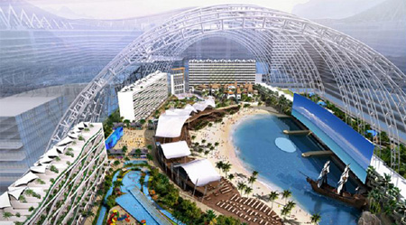 New Century Global Center официально самое большое отдельно стоящее здание на Земле. Оно может вместить 20 Сиднейских опер, и оно в три раза больше Пентагона. Освещать центр будет так называемое искусственное солнце. Здесь есть бизнес-центры, шопинг-моллы, 14-экранный IMAX-кинотеатр, каток, на котором можно будет проводить разные соревнования, и даже средиземноморский курорт под названием «Райский остров».
