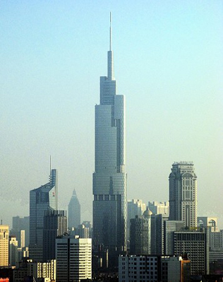 Третье по высоте самое высокое здание в КНР; буквально название переводится как "Высотное здание "Пурпурный пик" в Нанкине".
