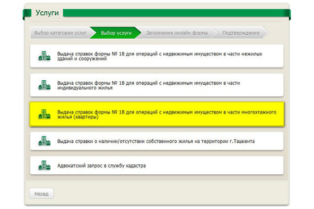 Отделы «Одно окно» Службы землеустройства и кадастра недвижимости Ташкента с 10 сентября приступают к приему онлайн-заявлений от граждан и юридических лиц на выдачу справок формы №18 для совершения операций с недвижимым имуществом в части квартир, расположенных в многоэтажной жилой застройке столицы. Об этом «Газете.uz» сообщили в Управлении по земельным ресурсам и государственного кадастра Ташкента.