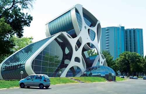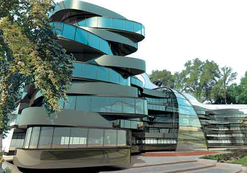 Идея: будущие архитекторы должны учиться в здании, которое не похоже на другие, ведь именно они будут создавать города будущего. Пятиэтажное сооружение в стиле хай-тек отличается архитектурной пластикой. Имеется большой выставочный павильон. Каждый этаж рассчитан на одну кафедру. Предусмотрены специальные аудитории для проведения творческих занятий.