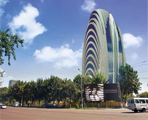 Идея: 32-этажный небоскреб выполнен в стиле модерн. По функциональности универсален. Вмещает офисные помещения, гостиницу, конференц-зал, развлекательный комплекс, в том числе – выставочные помещения, большой кинотеатр, приспособленный для просмотра фильмов в формате 3D, который по мере надобности трансформируется в театральную или музыкальную площадку.