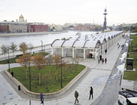 Шанс превратить обычную московскую набережную в дизайнерский ландшафтный парк выпал архитектурному бюро Wowhaus. Еще в феврале нынешнего года на заседании совета по развитию общественных пространств руководители бюро Дмитрий Ликин и Олег Шапиро показали проект обустройства этой территории Сергею Собянину. Градоначальнику идея понравилась, и в апреле замысел начали воплощать в жизнь. Парк условно разделили на четыре зоны: подмостовое пространство, зону художников, в которой доминирует павильон «Вернисаж», Фонтанную площадь и «Зеленые холмы». Учли визуальное восприятие парка с воды и с противоположного берега. Основным архитектурным элементом стала волна: на набережной появились волнообразные скамейки, пешеходные и велосипедные «волны», образующие искусственный рельеф.