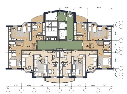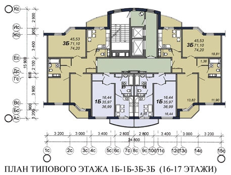 МНИИТЭП разработала четыре варианта типового этажа. В одном из них представлена блок-секция, которая состоит лишь из двухкомнатных квартир различной площади. Другой вариант предполагает размещение на этаже двух "однушек" и двух "трешек" малой площади. В следующем варианте – две "однушки" плюс две "трешки" большой площади. И в последнем варианте вместе с однокомнатной и трехкомнатной малой появляется квартира из четырех комнат.