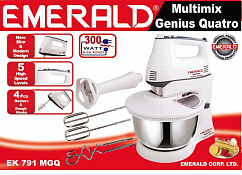 Миксер с большой чашкой Emerald EK791 поможет как в приготовлении выпечки для всей семьи, так и в создании любых коктейлей и каш по вашему индивидуальному рецепту благодаря дополнительной насадке-блендеру.