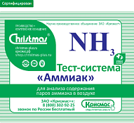 Тест-система «Аммиак» специфична к основным (приоритетным) загрязнителям воздушной среды. Тест-система «Аммиак», разработанная и производимая ЗАО «Крисмас+», является простым экономичным средством химического контроля содержания аммиака в воздухе.
