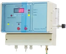 Газоанализатор состоит из двух блоков: блока измерительного (БИ) и блока реле (БР). Газоанализатор устанавливается вне взрывоопасной зоны, либо в зоне В1-Б и соединяется с местом отбора пробы трубопроводом. Газоанализатор может работать самостоятельно или совместно с устройством принудительной подачи пробы ПРУС-1, в состав которого входит огнепреградитель, исключающий передачу взрыва от места установки устройства по трубопроводу к месту отбора пробы. Огнепреградитель имеет маркировку взрывозащиты Ex db IIC Gb U. Удаленный пробоотбор позволяет контролировать загрязненность воздуха при любых, в том числе экстремально низких температурах, а также при наличии в контролируемой зоне веществ с низкой температурой воспламенения (температурный класс Т6). При совместной работе газоанализатора с устройством ПРУС-1 пробоотбор может осуществляться с расстояния до 50 м. При самостоятельной работе газоанализатора пробоотбор может осуществляться с расстояний не более 10 м от места установки газоанализатора и только из взрывобезопасной зоны. Газоанализатор работает в циклическом режиме. Измерения производятся 10 с: анализируемый воздух прокачивается через ФИД с помощью встроенного компрессора. В остальное время производится очистка газовых трактов и ФИД, что обеспечивает длительную работу прибора без загрязнения. Газоанализатор имеет световую сигнализацию о превышении измеряемой концентрацией заданных пороговых значений. Для коммутации исполнительных устройств газоанализатор имеет реле.