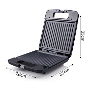 2 большие пластины для приготовления пищи, вмещающие одновременно 4 ломтика бутерброда или 6 средних панини. Гриль на 180° и пресс-корпус для универсального приготовления здоровой пищи. Крытый гриль может работать как пресс для панини, сэндвичница, настольный гриль для стейков и жаровня.