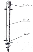 Репер грунтовый состоит из специального чугунного винта, позволяющего ввинчивать репер в грунт, металлической трубы и реперной головки.
