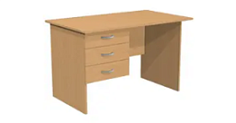 Ламинированная ДСП толщиной 16 мм, кромка ABS 0,5 мм в цвет ЛДСП. Письменный стол для учителя с тремя выдвижными ящиками и нишей. В базовую комплектацию изделия входит: ЛДСП, конфирматы, механизмы выдвижения ящиков - роликовые направляющие белого цвета, ручки (межосевое расстояние 96 мм, цвет - хром).