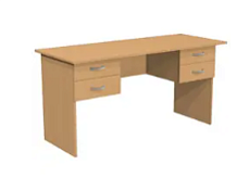 Ламинированная ДСП толщиной 16 мм, кромка ABS 0,5 мм в цвет ЛДСП. Письменный стол для учителя с четырьмя выдвижными ящиками. В базовую комплектацию изделия входит: ЛДСП, конфирматы, механизмы выдвижения ящиков - роликовые направляющие белого цвета, ручки (межосевое расстояние 96 мм, цвет - хром).