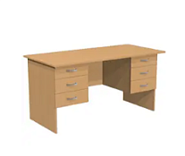 Ламинированная ДСП толщиной 16 мм, кромка ABS 0,5 мм в цвет ЛДСП. Письменный стол для учителя с шестью выдвижными ящиками. В базовую комплектацию изделия входит: ЛДСП, конфирматы, механизмы выдвижения ящиков - роликовые направляющие белого цвета, ручки (межосевое расстояние 96 мм, цвет - хром).
