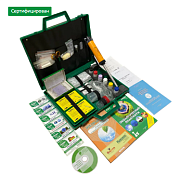 принадлежности (ножницы, пинцет, ложка-шпатель, лупа, мерные калиброванные пробирки, мешки полиэтиленовые, специальные пипетки-капельницы, поднос-лоток (16×26 см), предметные стекла, склянка, стакан для приготовления почвенных вытяжек, фильтры бумажные, салфетки, штатив для калиброванных пробирок);