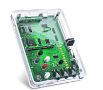Лаборатория состоит из платы с датчиками и программируемыми сенсорами, которая упакована в прочный прозрачный картридж, чтобы дети могли видеть содержимое и разобраться в микроэлектронной части.