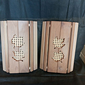 Абажур (буквально "приглушитель света") - составная часть светильника, используется в дизайне интерьеров, художественном оформлении помещений. Абажуры в банях и саунах - это не просто составные части источников света, но и элементы интерьера, которые придают помещению оригинальность, дарят атмосферу комфорта и неповторимое очарование. Порода дерева: термолипа.