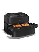 — Две корзины по 3,55 л или один лоток 7,1 л без разделителя — До 900 г картофеля фри, 1,2 кг овощей или 10 куриных ножек за раз — Одновременное приготовление разных блюд с синхронизацией — Экономия электроэнергии до 75 % по сравнению с духовкой — Технология RapidAir для равномерного прожаривания — Антипригарное покрытие, лёгкая очистка — Управление через приложение HomeID с рецептами — Компактный и устойчивый корпус с нескользящими ножками