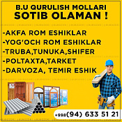 Скажите продавцу, что получили его номер телефона на Stroyka.uz. Уточняйте о возможных скидках.