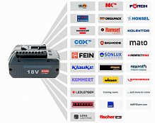 Наши аккумуляторы совместимы с инструментами мультибрендового альянса, включая Bosch Professional 18V и более 30 ведущих мировых брендов.