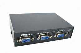 Данный активный разветвитель-сплиттер VGA предназначен для подключения к одному компьютеру или ноутбуку с выходом VGA двух мониторов/проекторов/тв с входами VGA.