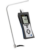 Прибор позволяет измерять скорость потока до 80 м/сек. Специальная форма зонда позволяет работать при изогнутой форме канала, а также в труднодоступных местах при минимальном размере входного отверстия. Встроенный блок памяти позволяет сохранять до 99 значений.