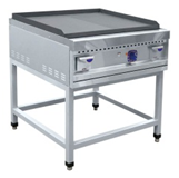 ( 900 серия, предназначен для приготовления таких блюд, как: стэйк, рыба, блины, омлет, путем непосредственного контакта греющей поверхности с пищей. Установлен на крашенную подставку. Имеет плавную регулировку температуры жарочной поверхности от 65 до 2700С. Жарочная поверхность, площадью – 0,57 кв.м., имеет одну половину с гладкой поверхностью, другую с рифленой. На лицевой панели расположены лотки для сбора масла. Потреб. мощность - 12 кВт, , кол-во ТЭНов-8 шт., , время разогрева - 25 мин., облицовка изготовлена из нержавеющей стали,габ. разм. – 840x850x909 мм., масса-100кг)