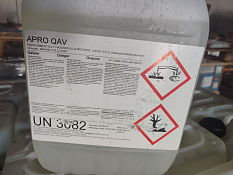 Apro® QAV - это продукт на основе четвертичных аммониевых соединений и неионогенных ПАВ для дезинфекции поверхностей любого типа в области переработки и продажи продуктов питания. Слабо щелочная формула Apro® QAV бережно обрабатывает поверхности, эффективен против бактерий, дрожжевых клеток вирусов. Комбинация активных веществ, содержащаяся в Apro® QAV, растворяют и эмульгируют жиры, белки и пигментные загрязнения, и долгое время сохраняет эти загрязнения в растворе.