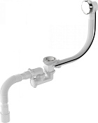 Сифон для ванн регулируемый с переливом полуавтоматом. Металлическая ручка перелива-полуавтомата соединена с заглушкой-грибком на выпуске специальным тросиком. При повороте ручки на переливе в одну сторону, грибок опускается, закрывая слив воды; при повороте в обратную сторону - грибок открывается. Выпуск сифона спроектирован под стандартный диаметр сливного отверстия на всех типах ванн Ø50 мм. Подходит для всех типов ванн, в т.ч. чугунных, из-за увеличенной длины винта (27мм по резьбе). Колено сифона регулируемое с высотой гидрозатвора 50 мм. Колено сифона имеет ревизионное отверстие, заглушенное прокладкой и гайкой, для легкой прочистки сифона без его демонтажа, а Г-образная трубка отвода позволяет направить гофротрубу слива в нужную сторону. Артикул идет в комплекте с гофротрубой с универсальным выходом в канализацию 40/50мм. Скорость слива: 25 л/мин. Прокладки на выпуске выполнены из материала термоэластопласта (ТЭП), который не вступает в реакцию в акриловыми ваннами. Полная комплектация, все гайки, прокладки и схема установки в комплекте.