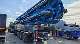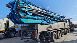 | ■ Описание: | бетононасос Jiuhe на базе пятиосного шасси Howo-TX, высотой подачи 63 м, предназначен для приема свежеприготовленной бетонной смеси от специализированных бетонотранспортных средств (от автобетоносмесителей) и подачи её в горизонтальном и вертикальном направлениях к месту укладки; двигатель, шасси, кабина, мосты произведены по технологии MAN |