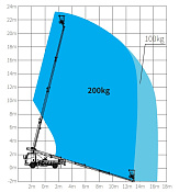■ Грузоподъемность рабочей платформы: 200 кг - если радиус работы до 14 м / 100 кг - если радиусе работы от 14 до 17 м