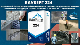 Бауберг ( Bauberg ) 224 Смесь сухая для ремонта Безусадочный быстротвердеющий состав наливного типа для конструкционного ремонта и изготовления конструкций. Литьевой ремонтный состав